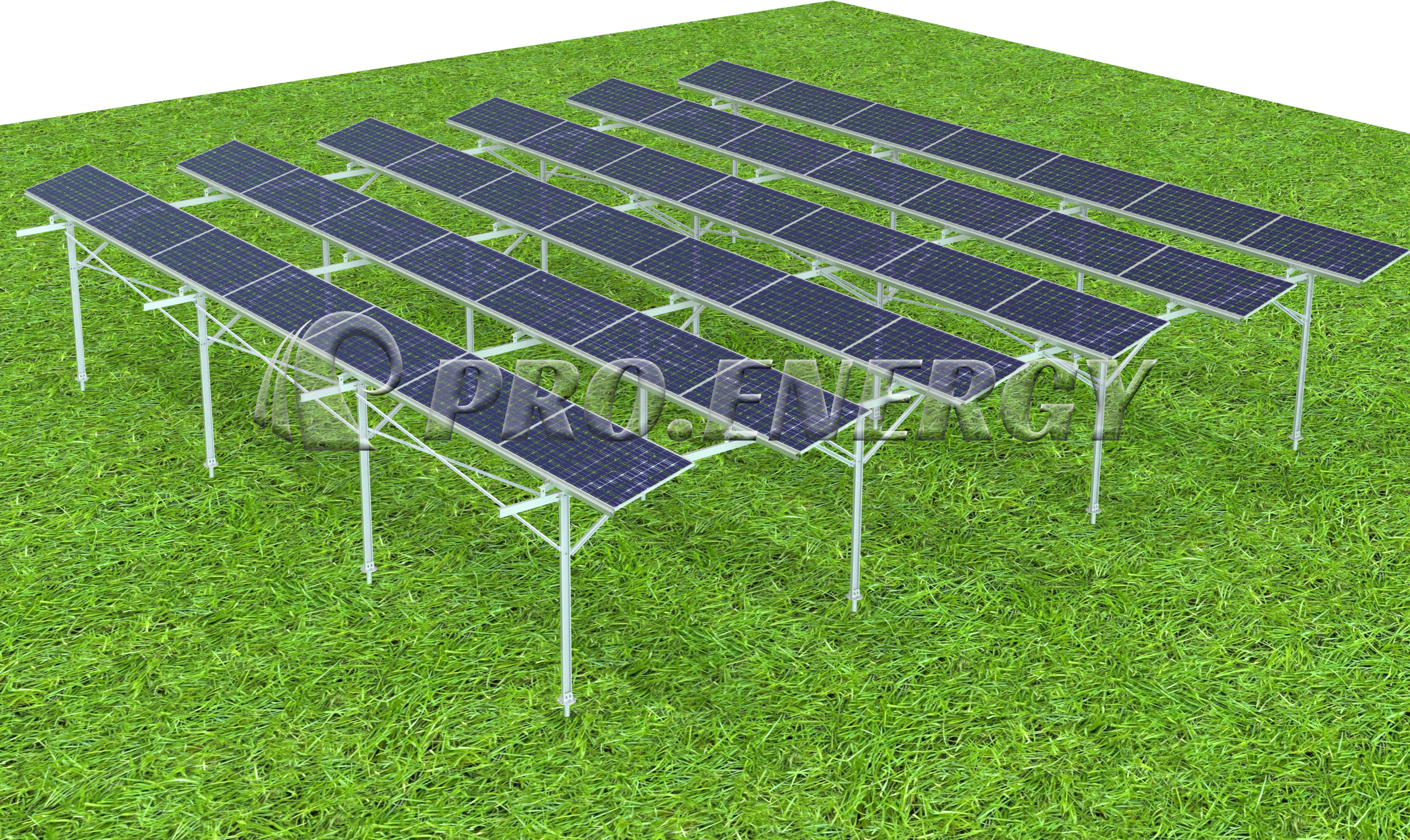 Japan as the pioneer of Agricultural photovoltaic power generation in the global. The overhead mounted system is always their first option. That is because the limitation of farming land. PRO.ENERGY designed overhead Agri PV mounted system is an innovative solution for optimizing land utilization, it realizes the maximum power generation while farming purpose. For crops as like the wheat,berries, pome fruit, stone fruit, a 70% sunlight is necessary for sufficicent growth. However, standard modules allow practically no light transmission and even fully occupied double glass modules only achieve about 10% transmission instead of the often claimed 30%. Therefore, PRO.ENERGY maintains spacing between modules by utilizing triangle brackets to elevate the modules and ensure adequate sunlight penetration while maximizing the number of installed modules.
