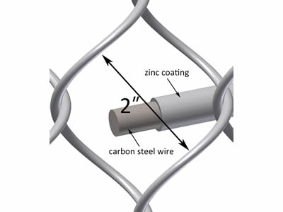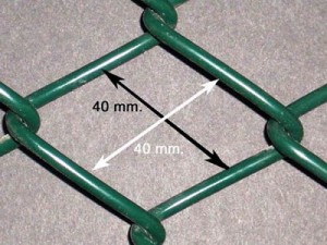 Mesh size tells you how far apart the parallel wires are in the mesh. That is another indications of how much steel is in the chain link. The smaller the diamond, the more steel is in the chain link fabric. From largest to smallest, typical chain link mesh sizes are 2-3/8″, 2-1/4″ and 2″. Smaller chain link meshes such as 1-3/4″ is used for tennis courts, 1-1/4″ for pools and higher security, the mini chain link meshes of 5/8″, 1/2″ and 3/8″ are also available.