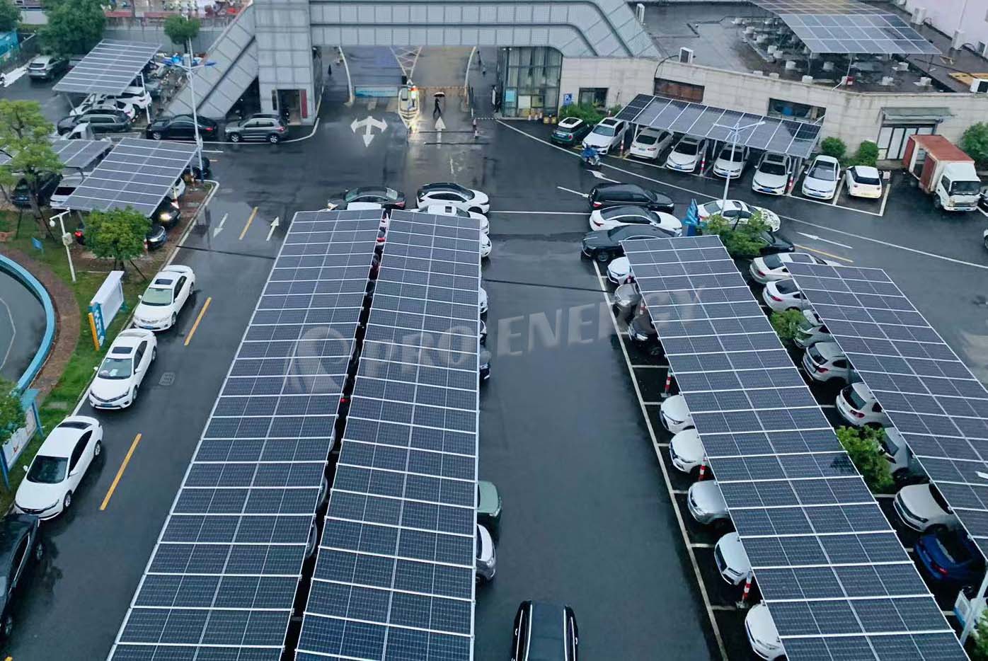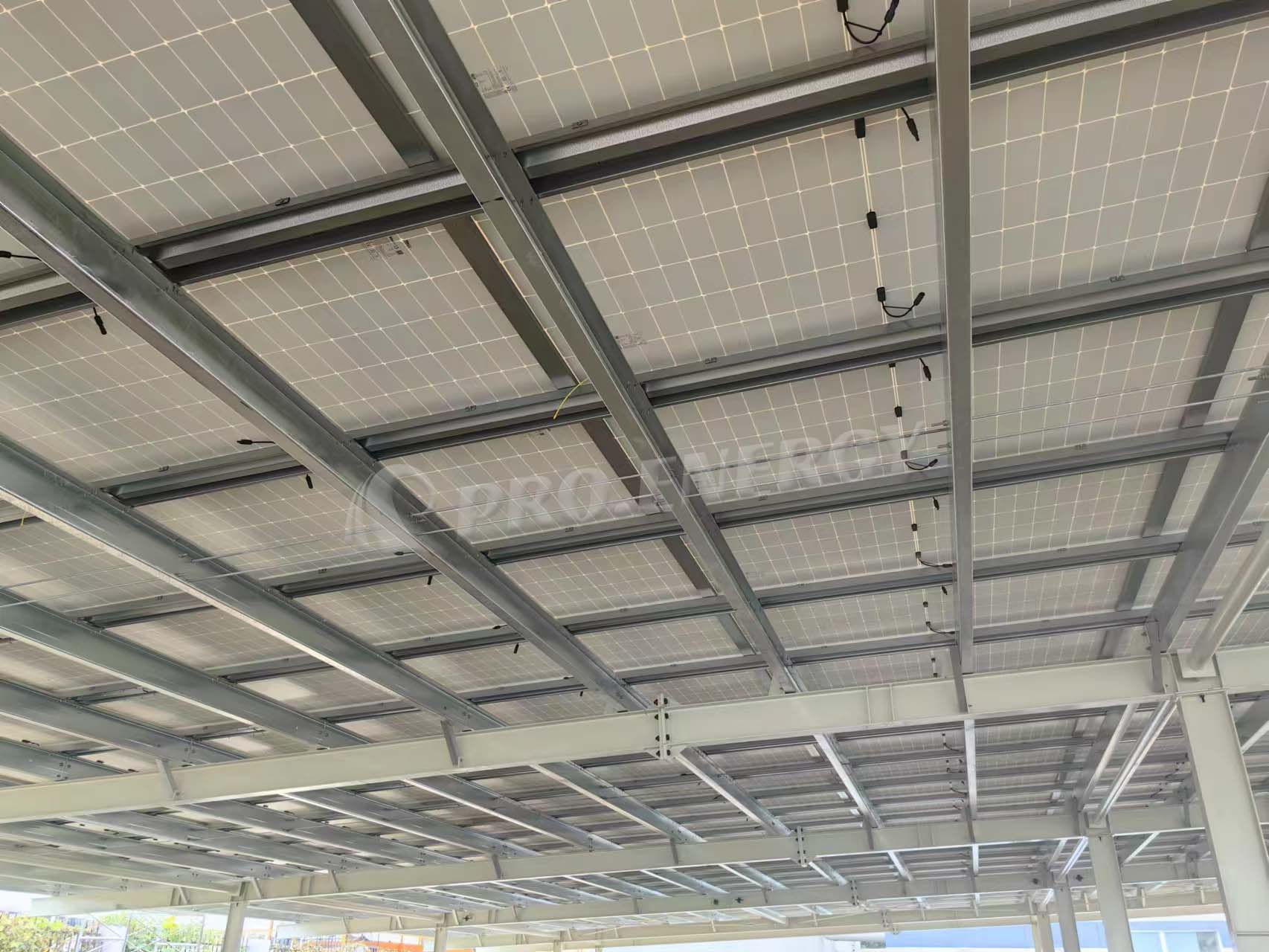 PRO.ENERGY provided two types of solar carport mounting solutions for two projects, both of them have been successfully connected to the grid. Our carport solar mounting system combines PV with carport beneficially. Not only solves the problems of high temperature, rainfall, wind of parking vehicles under open-air conditions, but also utilizes the idle space of the carport for power generation.