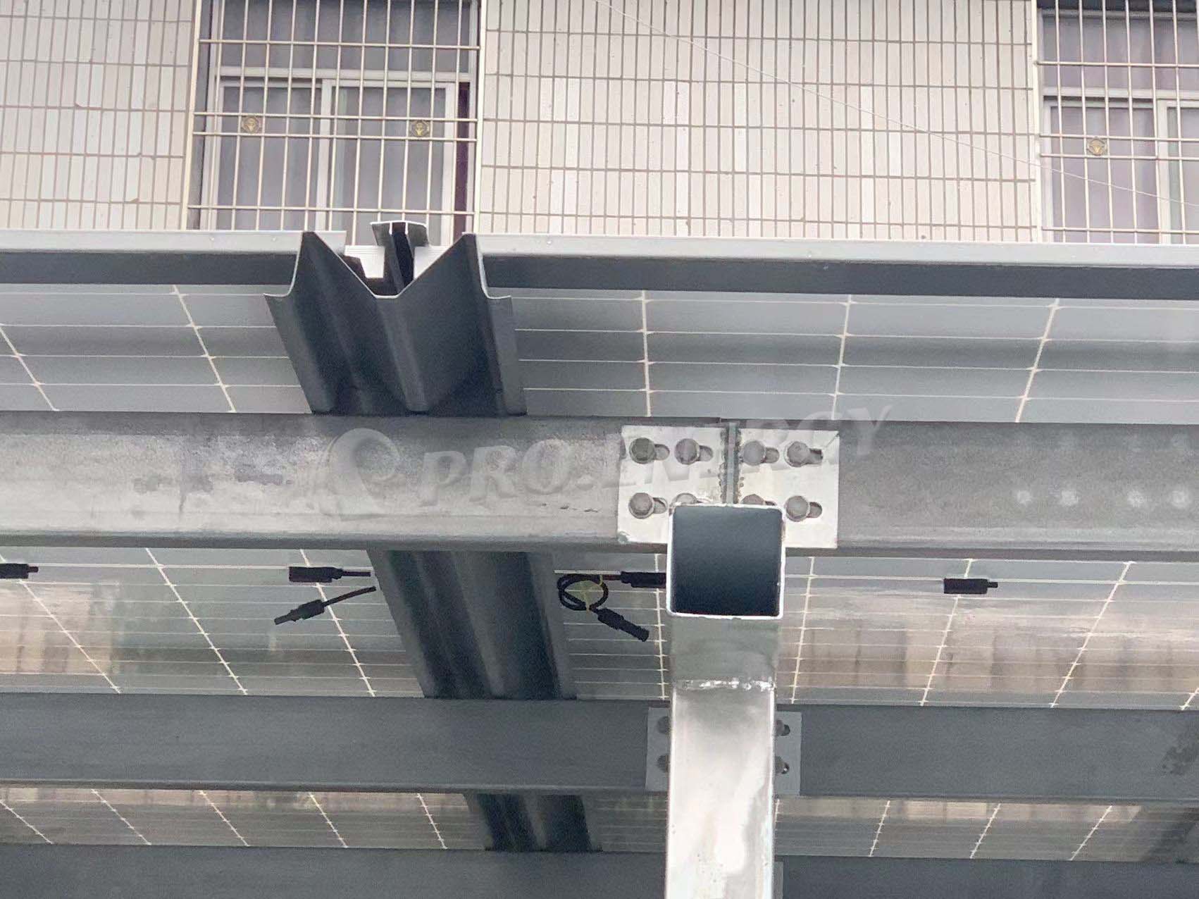 PRO.ENERGY provide customize service according to customer’s needs. All the solar carport solution made of carbon steel Q355B with a yield 355MPa, it is resistant to high wind pressure and heavy snow loading.The beam and post can be spliced on site to avoid large machinery, it will saving construction cost. We can also do waterproof structure treatment according to project’s needs.
