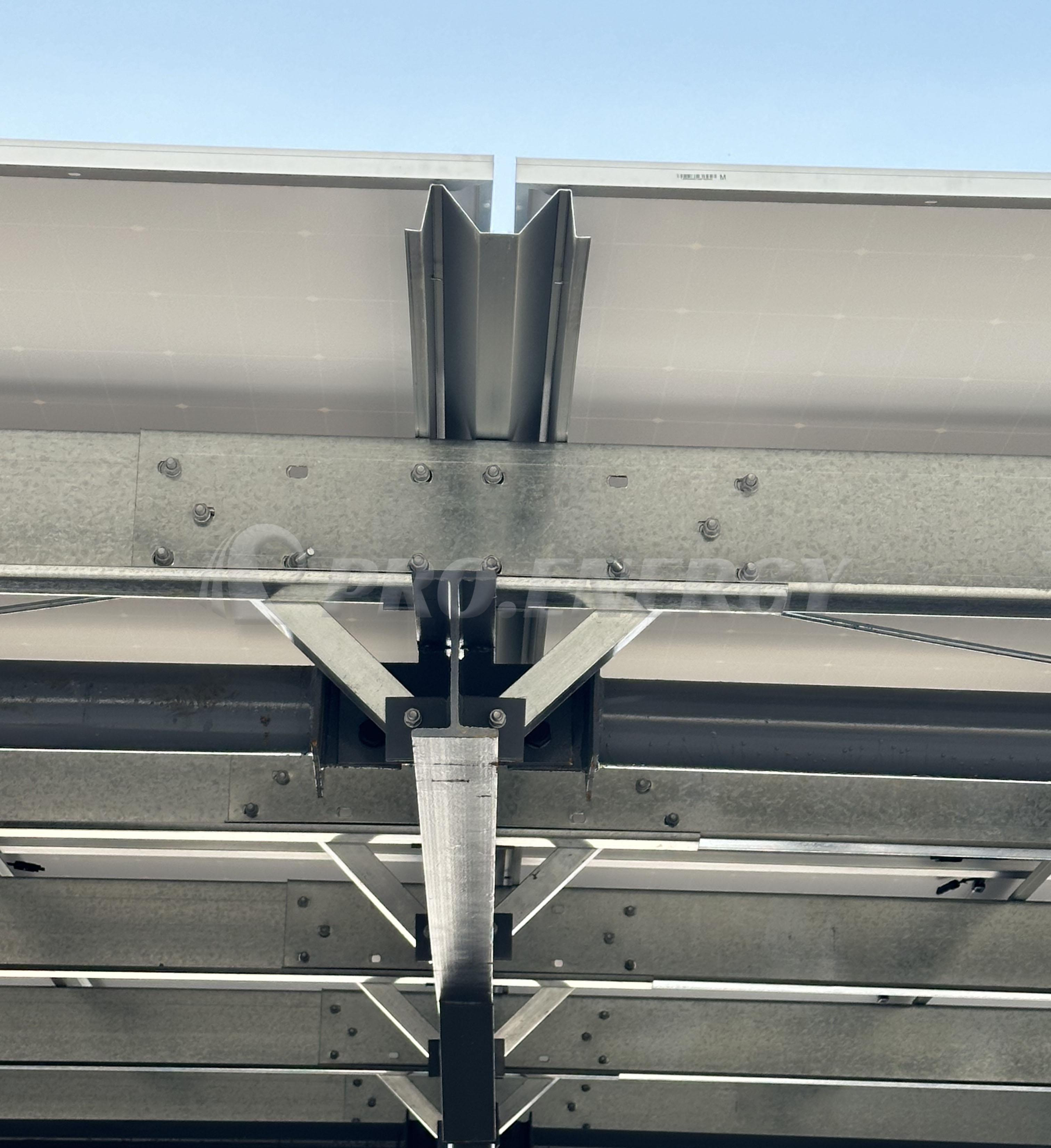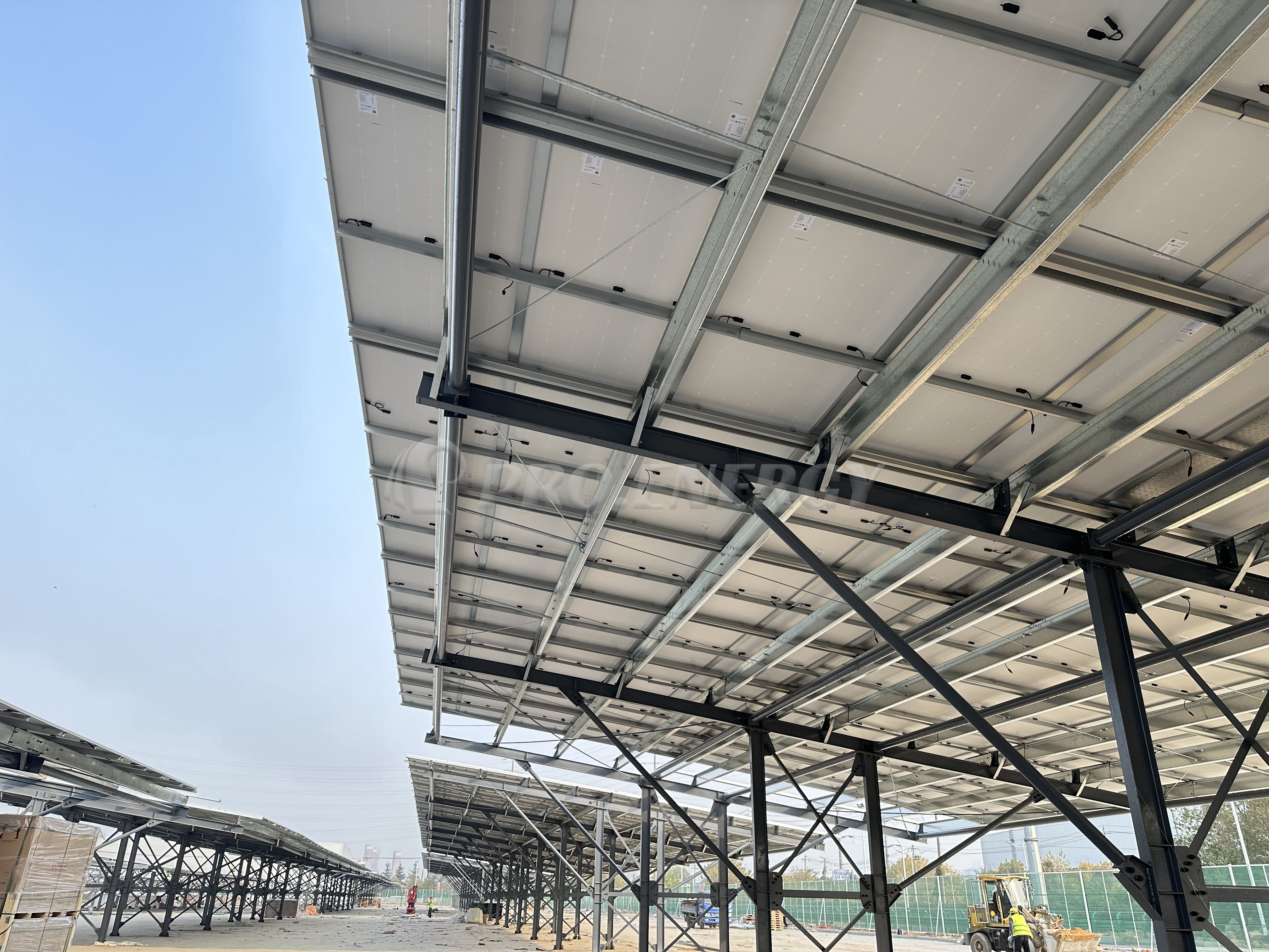 The project uses PRO.ENERGY‘ s current most popular standardized carport solution—Carbon steel double wings carport mount system.